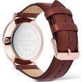 Este relógio Daniel Wellington tem uma caixa de Inox com um diâmetro de 40 mm e está equipado com uma bracelete de couro.