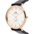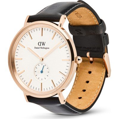 Este relógio Daniel Wellington tem uma caixa de Inox com um diâmetro de 40 mm e está equipado com uma bracelete de couro.