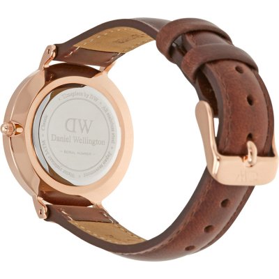 Este relógio Daniel Wellington tem uma caixa de Inox com um diâmetro de 32 mm e está equipado com uma bracelete de couro. A caixa possui um movimento Miyota e o relógio tem um vidro Mineral.