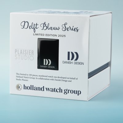Inspirado no Delftware, em colaboração com o Studio Plaisier e o Danish Design, o Holland Watch Group criou um relógio de estilo holandês - ou melhor, três relógios - que representam a nossa tradição numa chave moderna com um presente extra: um colar com pendente de cerâmica, feito à mão por artesãos para esta edição limitada.