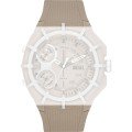 Esta bracelete de relógio Diesel é feita de silicone e está fixada ao relógio através de pinos de pressão. A bracelete tem uma largura de 31 mm e fecha através de fecho. A bracelete não tem uma montagem a direito, o que significa que esta bracelete só é adequada para os relógios listados abaixo.