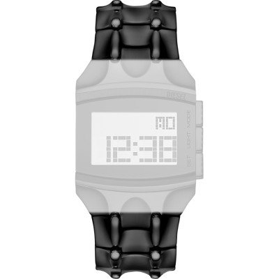 Esta bracelete de relógio Diesel é feita de aço inoxidável e está fixada ao relógio através de pinos em aço. A bracelete tem uma largura de 25 mm e fecha através de fivela dobrável com botões de pressão. A bracelete não tem uma montagem a direito, o que significa que esta bracelete só é adequada para os relógios listados abaixo.