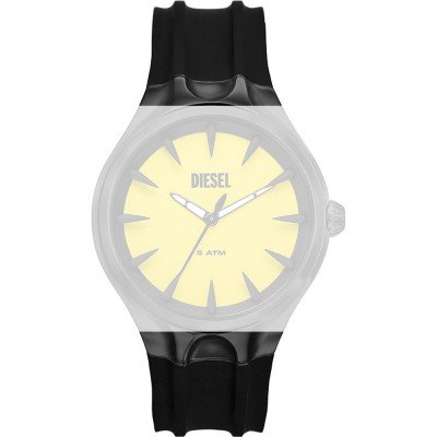 Esta bracelete de relógio Diesel é feita de silicone e está fixada ao relógio através de pinos de pressão. A bracelete tem uma largura de 24 mm e fecha através de fecho. A bracelete não tem uma montagem a direito, o que significa que esta bracelete só é adequada para os relógios listados abaixo.