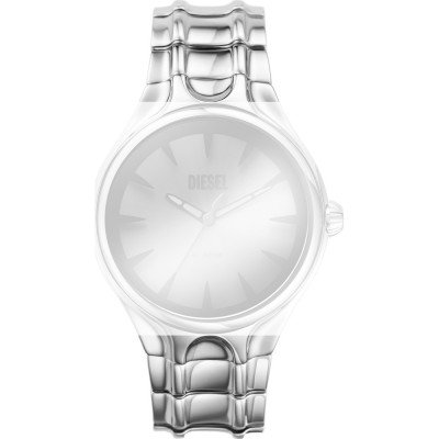 Esta bracelete de relógio Diesel é feita de aço inoxidável e está fixada ao relógio através de pinos de pressão. A bracelete tem uma largura de 24 mm e fecha através de fivela dobrável com botões de pressão. A bracelete não tem uma montagem a direito, o que significa que esta bracelete só é adequada para os relógios listados abaixo.