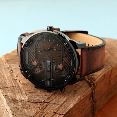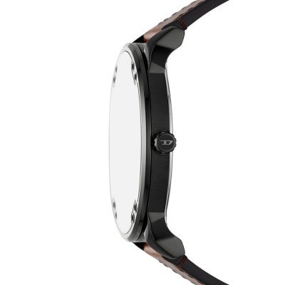 Este relógio Diesel tem uma caixa de Inox com um diâmetro de 54 mm e está equipado com uma bracelete de couro. A caixa possui um movimento Miyota e o relógio tem um vidro Mineral.