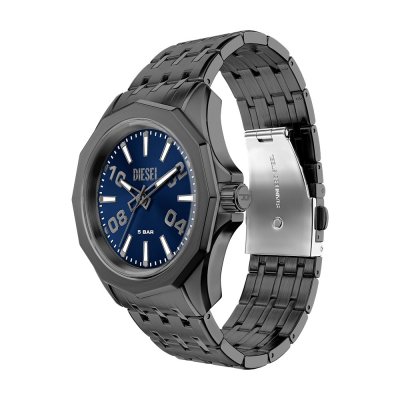 Este relógio Diesel tem uma caixa de Inox com um diâmetro de 44 mm e está equipado com uma bracelete de Inox. A caixa possui um movimento Miyota e o relógio tem um vidro Mineral.