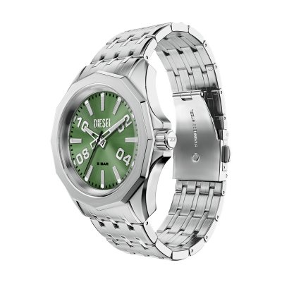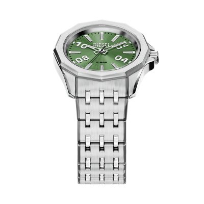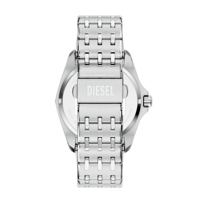 Este relógio Diesel tem uma caixa de Inox com um diâmetro de 44 mm e está equipado com uma bracelete de Inox. A caixa possui um movimento Miyota e o relógio tem um vidro Mineral.