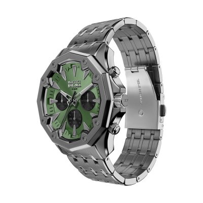 Este relógio Diesel tem uma caixa de Inox com um diâmetro de 46 mm e está equipado com uma bracelete de Inox. A caixa possui um movimento Seiko Instruments Inc. e o relógio tem um vidro Mineral.