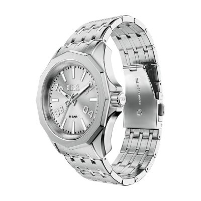 Este relógio Diesel tem uma caixa de Inox com um diâmetro de 44 mm e está equipado com uma bracelete de Inox. A caixa possui um movimento Miyota e o relógio tem um vidro Mineral.