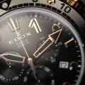 Este relógio Edox tem uma caixa de Inox com um diâmetro de 45 mm e está equipado com uma bracelete de borracha. A caixa possui um movimento Ronda e o relógio tem um vidro Safira.