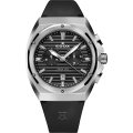 Este relógio Edox tem uma caixa de Inox com um diâmetro de 43 mm e está equipado com uma bracelete de borracha. A caixa possui um movimento Ronda e o relógio tem um vidro Safira.