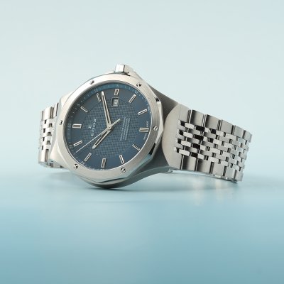 Este relógio Edox tem uma caixa de Inox com um diâmetro de 43 mm e está equipado com uma bracelete de metal. A caixa possui um movimento Ronda e o relógio tem um vidro Safira.