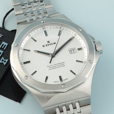 Este relógio Edox tem uma caixa de Inox com um diâmetro de 43 mm e está equipado com uma bracelete de metal. A caixa possui um movimento Ronda e o relógio tem um vidro Safira.
