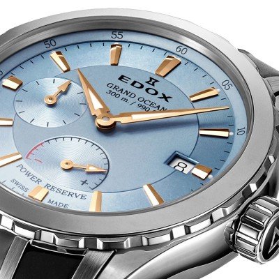 O Grand Ocean Power Reserve é um relógio de mergulho automático, resistente à água 30 ATM, da família Grand Ocean. Uma série de relógios lendária com as suas raízes no mundo dos iates e das regatas. Alimentado por um movimento automático Sellita SW279-1, o relógio apresenta não só um pequeno mostrador de segundos, mas também um elegante indicador de reserva de marcha. Outra caraterística marcante é o fundo da caixa em rosa dos ventos com janelas para o movimento. A cómoda bracelete em borracha com fecho de borboleta adapta-se perfeitamente à caixa "tripla" em chifre. Trata-se de uma caraterística de design distinta inspirada na engenharia náutica, que proporciona um ajuste seguro e ergonómico, ao mesmo tempo que confere um aspeto distinto.