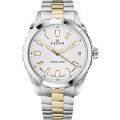 Este relógio Edox tem uma caixa de Inox com um diâmetro de 33 mm e está equipado com uma bracelete de Inox. A caixa possui um movimento Ronda e o relógio tem um vidro Safira.