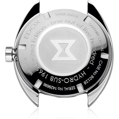 Este Edox Hydro-Sub é uma edição especial limitada a apenas 500 exemplares. É resistente à água até 30 ATM e alimentado por um movimento automático Edox Calibre 806, baseado no Sellita SW200 e certificado pelo COSC. O seu design clássico é realçado pela subtil luneta em cerâmica inserida e pelos ponteiros e índices luminosos proeminentes.