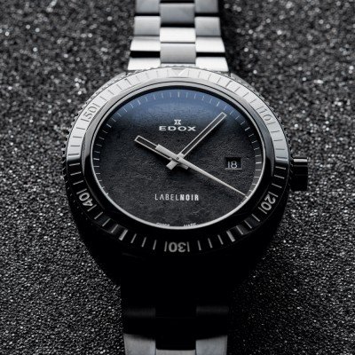O Hydro-Sub 80128-37NLNM-NLN foi desenvolvido em colaboração com o atelier de design Label Noir. Trata-se de uma prestigiada empresa suíça reconhecida pela sua experiência em personalizações de relógios por medida. A sua caraterística de design de assinatura é a integração de tons pretos nas suas criações, como neste caso o mostrador oxidado, que dá ao relógio uma bela textura e profundidade. O relógio é alimentado por um movimento automático Edox cal 806, regulado de acordo com a norma do Instituto Suíço Oficial de Controlo de Cronómetros (COSC). Possui uma bracelete confortável revestida a PVD, luneta em cerâmica, vidro de safira e é - como esperado da Edox - resistente à água até 30 ATM.