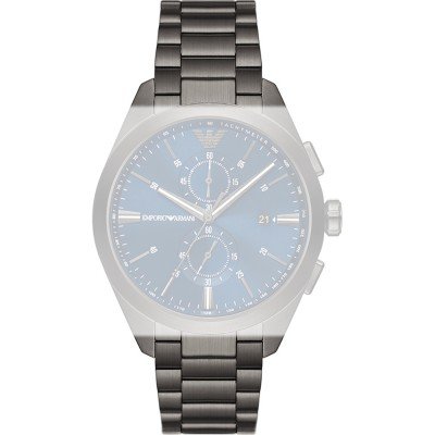 Esta bracelete de relógio Emporio Armani é feita de aço inoxidável e está fixada ao relógio através de pinos de pressão. A bracelete tem uma largura de 20 mm e fecha através de fivela butterfly com botões de pressão. A bracelete não tem uma montagem a direito, o que significa que esta bracelete só é adequada para os relógios listados abaixo.