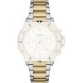 Esta bracelete de relógio Emporio Armani é feita de aço inoxidável e está fixada ao relógio através de pinos de pressão. A bracelete tem uma largura de 22 mm e fecha através de fivela butterfly com botões de pressão. A bracelete não tem uma montagem a direito, o que significa que esta bracelete só é adequada para os relógios listados abaixo.