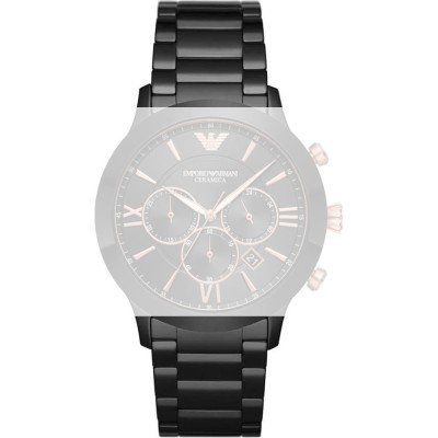 Esta bracelete de relógio Emporio Armani é feita de cerâmica e está fixada ao relógio através de pinos de pressão. A bracelete tem uma largura de 22 mm e fecha através de fivela butterfly com botões de pressão. A bracelete não tem uma montagem a direito, o que significa que esta bracelete só é adequada para os relógios listados abaixo.