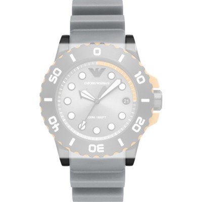 Esta bracelete de relógio Emporio Armani é feita de silicone e está fixada ao relógio através de pinos de pressão. A bracelete tem uma largura de 23 mm e fecha através de fecho. A bracelete não tem uma montagem a direito, o que significa que esta bracelete só é adequada para os relógios listados abaixo.