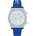 Esta bracelete de relógio Emporio Armani é feita de couro e está fixada ao relógio através de pinos de pressão. A bracelete tem uma largura de 20 mm e fecha através de fecho. A bracelete tem uma montagem a direito, o que significa que esta bracelete é adequada para todos os relógios Emporio Armani com montagem da bracelete a direito.