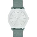 Esta bracelete de relógio Emporio Armani é feita de tecido e está fixada ao relógio através de pinos de pressão. A bracelete tem uma largura de 22 mm e fecha através de fecho. A bracelete tem uma montagem a direito, o que significa que esta bracelete é adequada para todos os relógios Emporio Armani com montagem da bracelete a direito.