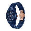 Este relógio Emporio Armani tem uma caixa de Cerâmica com um diâmetro de 43 mm e está equipado com uma bracelete de Cerâmica. A caixa possui um movimento Miyota e o relógio tem um vidro Mineral.