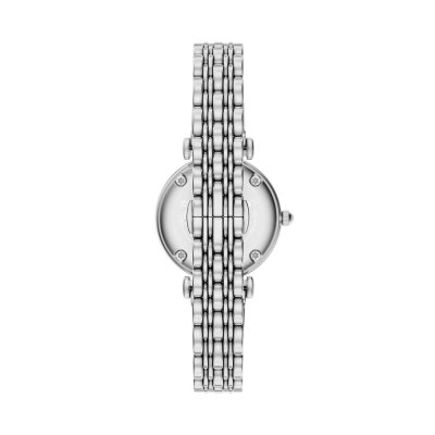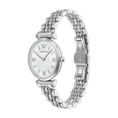 Este relógio Emporio Armani tem uma caixa de Inox com um diâmetro de 28 mm e está equipado com uma bracelete de Inox. A caixa possui um movimento Seiko Instruments Inc. e o relógio tem um vidro Mineral.