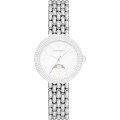 Esta bracelete de relógio Emporio Armani é feita de aço inoxidável e está fixada ao relógio através de pinos em aço. A bracelete tem uma largura de 14 mm e fecha através de fivela butterfly invisível. A bracelete não tem uma montagem a direito, o que significa que esta bracelete só é adequada para os relógios listados abaixo.