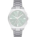 Esta bracelete de relógio Emporio Armani é feita de aço inoxidável e está fixada ao relógio através de pinos de pressão. A bracelete tem uma largura de 20 mm e fecha através de fivela butterfly invisível. A bracelete não tem uma montagem a direito, o que significa que esta bracelete só é adequada para os relógios listados abaixo.
