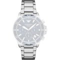 Esta bracelete de relógio Emporio Armani é feita de aço inoxidável e está fixada ao relógio através de pinos de pressão. A bracelete tem uma largura de 22 mm e fecha através de fivela butterfly com botões de pressão. A bracelete não tem uma montagem a direito, o que significa que esta bracelete só é adequada para os relógios listados abaixo.