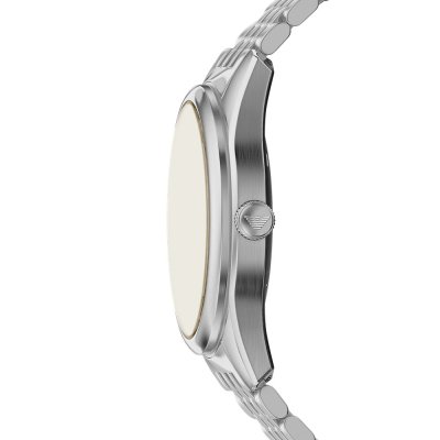 Este relógio Emporio Armani tem uma caixa de Inox com um diâmetro de 43 mm e está equipado com uma bracelete de Inox. A caixa possui um movimento Miyota e o relógio tem um vidro Mineral.