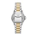Este relógio Emporio Armani tem uma caixa de Inox com um diâmetro de 42 mm e está equipado com uma bracelete de Inox. A caixa possui um movimento Miyota e o relógio tem um vidro Mineral.