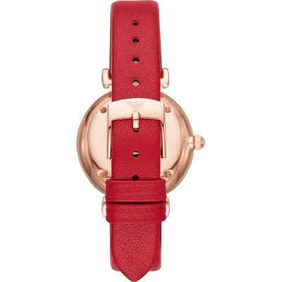 Este relógio Emporio Armani tem uma caixa de Inox com um diâmetro de 32 mm e está equipado com uma bracelete de couro. A caixa possui um movimento Miyota e o relógio tem um vidro Mineral.