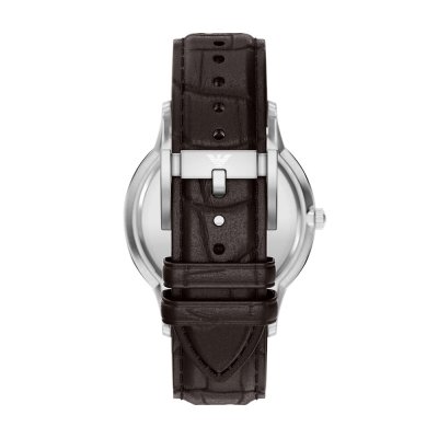 Este relógio Emporio Armani tem uma caixa de Inox com um diâmetro de 43 mm e está equipado com uma bracelete de couro. A caixa possui um movimento Seiko Instruments Inc. e o relógio tem um vidro Mineral.