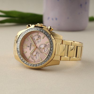 Este relógio Festina tem uma caixa de Inox com um diâmetro de 38 mm e está equipado com uma bracelete de Inox. A caixa possui um movimento Miyota e o relógio tem um vidro Mineral.
