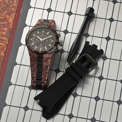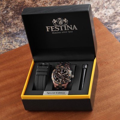 Este relógio Festina tem uma caixa de Inox com um diâmetro de 44.5 mm e está equipado com uma bracelete de Inox. A caixa possui um movimento Miyota e o relógio tem um vidro Mineral.