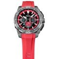 Este relógio Festina tem uma caixa de Inox com um diâmetro de 45.5 mm e está equipado com uma bracelete de borracha. A caixa possui um movimento Miyota e o relógio tem um vidro Mineral.