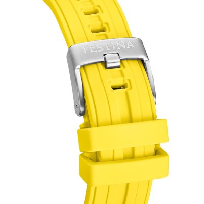 Este relógio Festina tem uma caixa de Inox com um diâmetro de 46 mm e está equipado com uma bracelete de borracha. A caixa possui um movimento Miyota e o relógio tem um vidro Mineral.