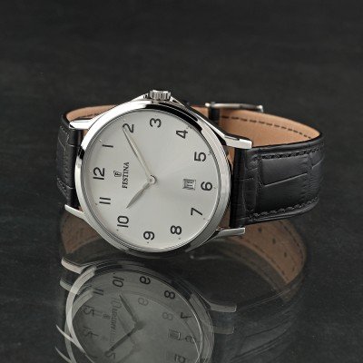 Este relógio Festina tem uma caixa de Inox com um diâmetro de 39 mm e está equipado com uma bracelete de couro. A caixa possui um movimento Miyota e o relógio tem um vidro Mineral.
