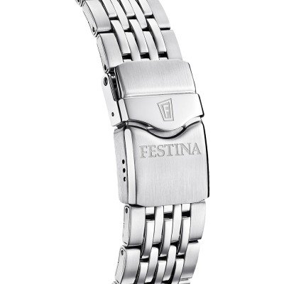 Este relógio Festina tem uma caixa de Inox com um diâmetro de 45 mm e está equipado com uma bracelete de Inox. A caixa possui um movimento Miyota e o relógio tem um vidro Safira.