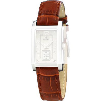 Esta bracelete de relógio Festina é feita de couro e está fixada ao relógio através de pinos de pressão. A bracelete tem uma largura de 14 mm e fecha através de fecho. A bracelete tem uma montagem a direito, o que significa que esta bracelete é adequada para todos os relógios Festina com montagem da bracelete a direito.
