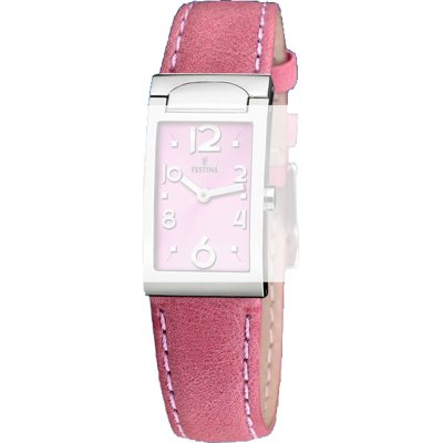 Esta bracelete de relógio Festina é feita de couro e está fixada ao relógio através de pinos de pressão. A bracelete tem uma largura de 18 mm e fecha através de fecho. A bracelete tem uma montagem a direito, o que significa que esta bracelete é adequada para todos os relógios Festina com montagem da bracelete a direito.