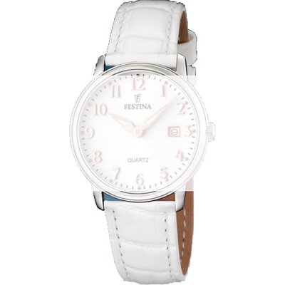 Esta bracelete de relógio Festina é feita de couro e está fixada ao relógio através de pinos de pressão. A bracelete tem uma largura de 17 mm e fecha através de fecho. A bracelete tem uma montagem a direito, o que significa que esta bracelete é adequada para todos os relógios Festina com montagem da bracelete a direito.