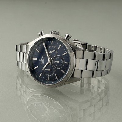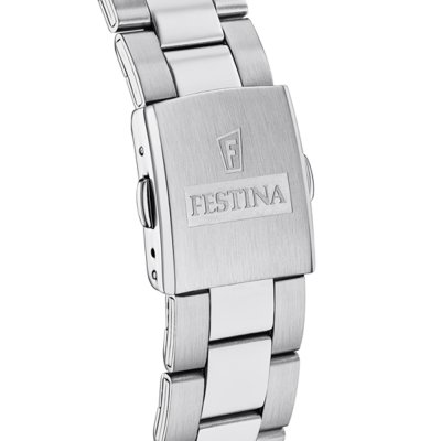 Este relógio Festina tem uma caixa de Inox com um diâmetro de 43 mm e está equipado com uma bracelete de Inox. A caixa possui um movimento Miyota e o relógio tem um vidro Mineral.