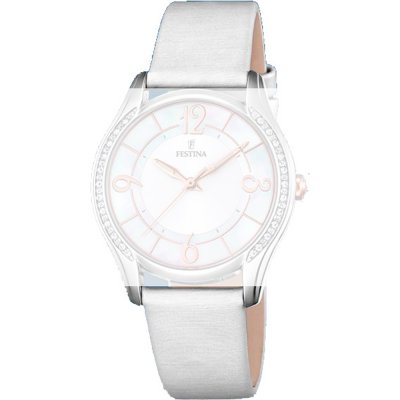 Esta bracelete de relógio Festina é feita de couro cetim e está fixada ao relógio através de pinos de pressão. A bracelete tem uma largura de 18 mm e fecha através de fecho. A bracelete tem uma montagem a direito, o que significa que esta bracelete é adequada para todos os relógios Festina com montagem da bracelete a direito.