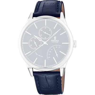Esta bracelete de relógio Festina é feita de couro e está fixada ao relógio através de pinos de pressão. A bracelete tem uma largura de 21 mm e fecha através de fecho. A bracelete tem uma montagem a direito, o que significa que esta bracelete é adequada para todos os relógios Festina com montagem da bracelete a direito.