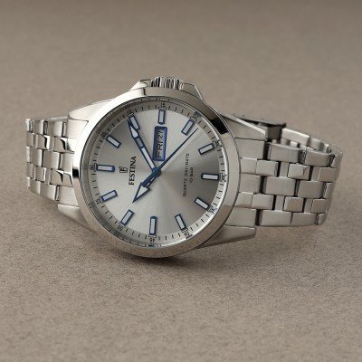 Este relógio Festina tem uma caixa de Inox com um diâmetro de 41 mm e está equipado com uma bracelete de Inox. A caixa possui um movimento Miyota e o relógio tem um vidro Mineral.