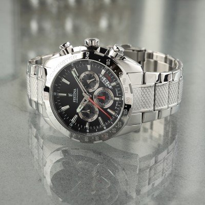Este relógio Festina tem uma caixa de Inox com um diâmetro de 46 mm e está equipado com uma bracelete de Inox. A caixa possui um movimento Miyota e o relógio tem um vidro Safira.